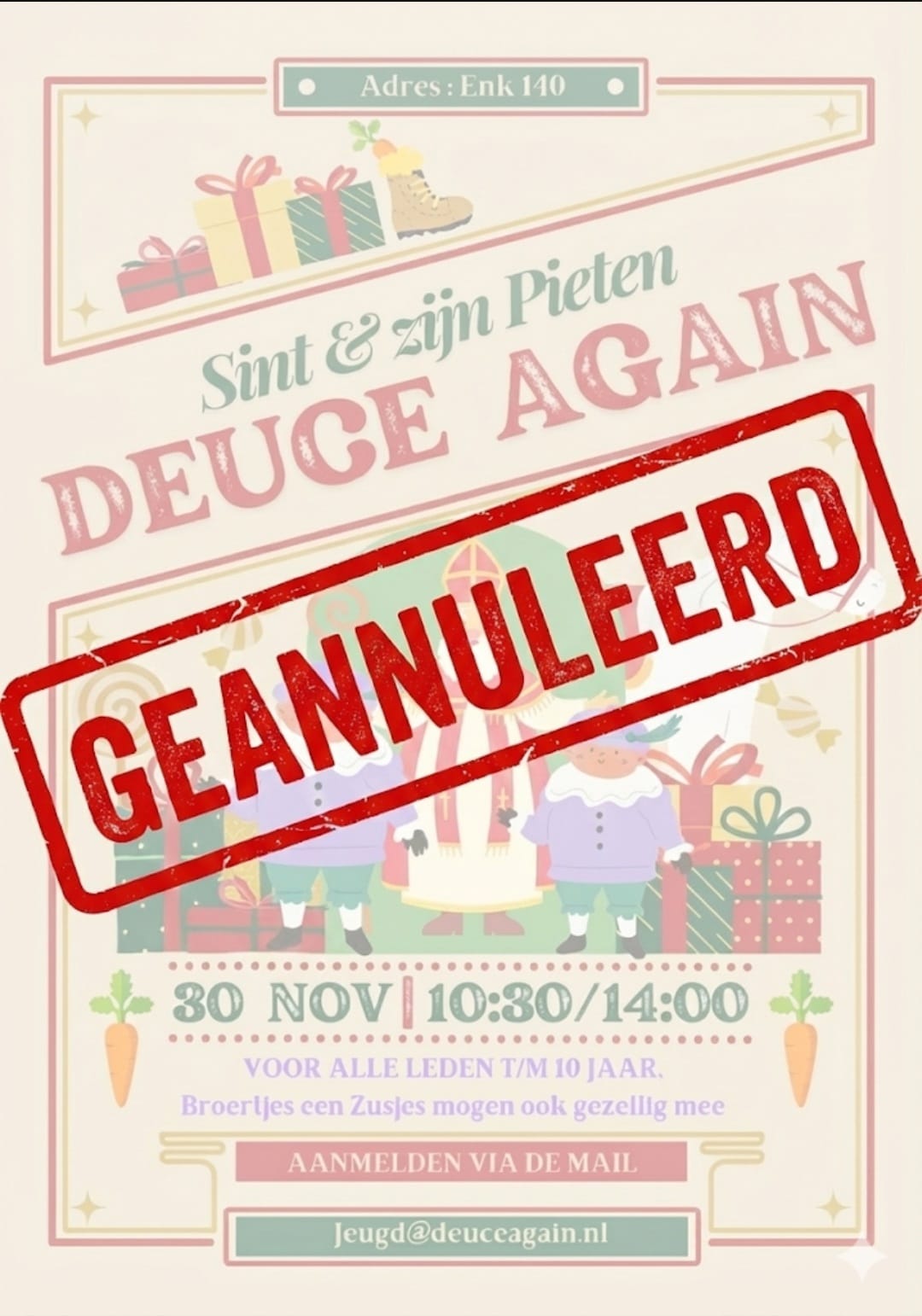 We vinden het heel jammer om te moeten melden dat het Sinterklaasfeest niet doorgaat. Er waren dit jaar te weinig aanmeldingen.